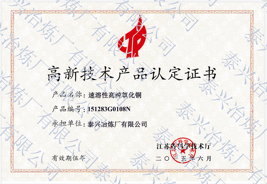 • 我國高端的氧化亞銅生產基地